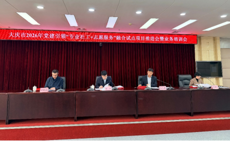 为深化政、校、社三方协同合作,推动社会工作专业人才培养与地方社会治理深度融合,4月2日,大庆市2026年党建引领“专业社工+志愿服务”融合试点项目推进会暨业务培训会在市政府召开。院长张文喜率队参会,我院10名教师受聘为市级督导专家,以专业师资、科研力量和人才培养优势为试点工作注入高校动能。